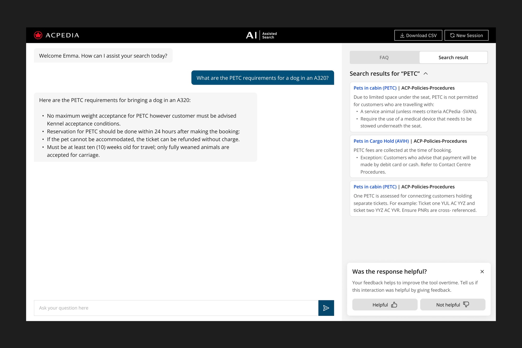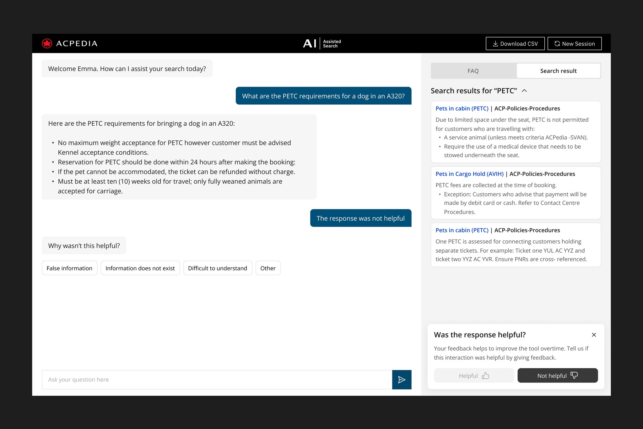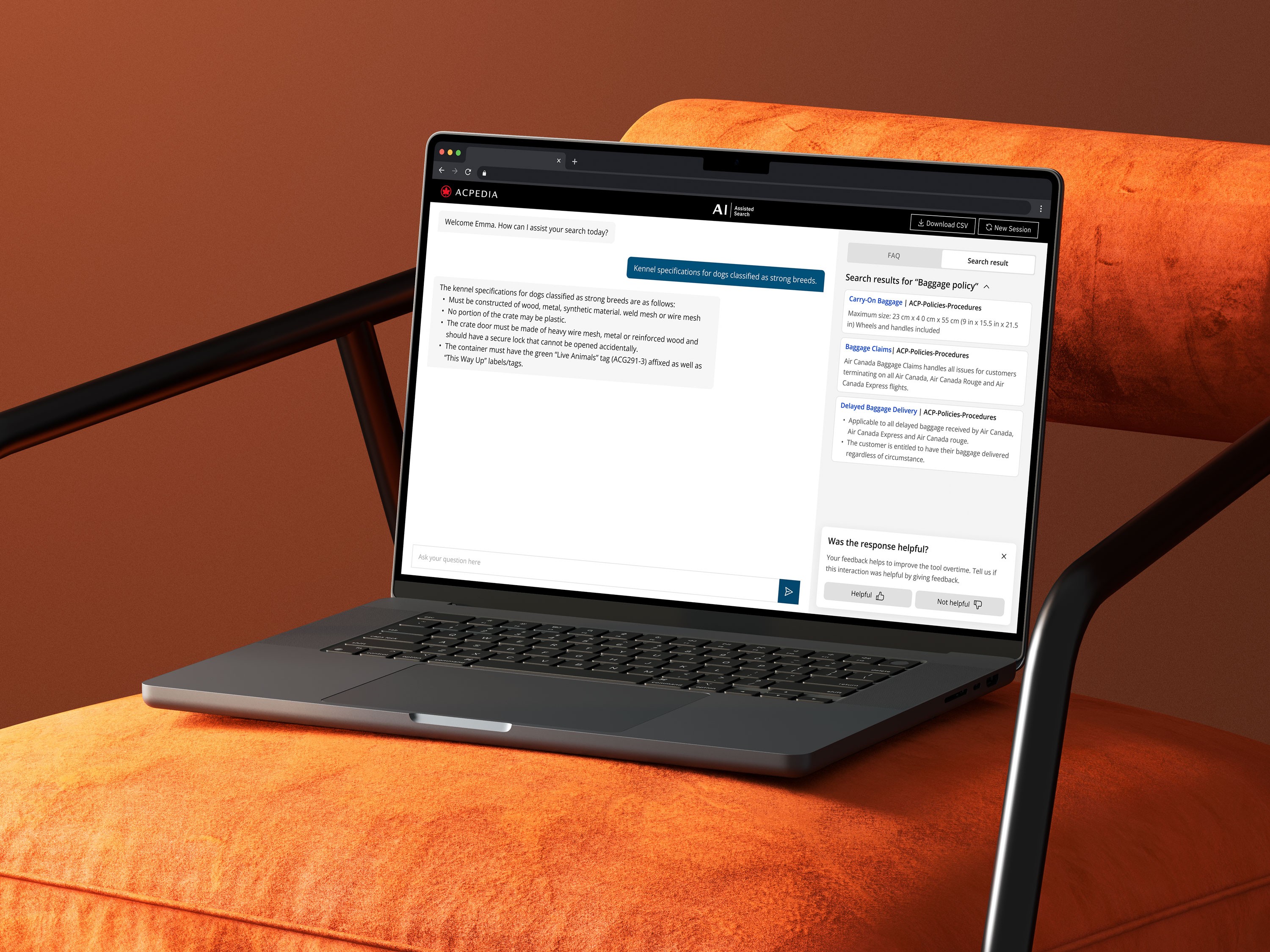 Air Canada’s Contact Centre agents rely on ACpedia, a large knowledge base with over 2,500 documents, to assist customers. However, navigating this vast resource poses many challenges.